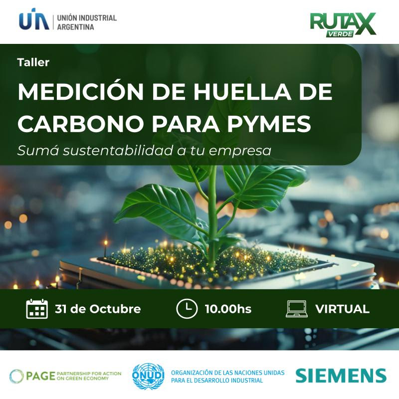 | Estimados/as, Los invitamos a participar del Taller de Medición de Huella de Carbono para PyMEs, organizado en el marco del programa Ruta Verde por la Unión Industrial Argentina (UIA) junto a PAGE – ONUDI. La actividad está dirigida a responsables de las áreas de ambiente o sustentabilidad de empresas PyMEs que buscan incorporar herramientas prácticas para mejorar su desempeño ambiental y su competitividad. Durante el encuentro se presentará la metodología de medición de huella de carbono desarrollada junto a PAGE – ONUDI, y se brindará una capacitación práctica sobre el uso de la herramienta SiGREEN, una calculadora de huella de carbono de disponibilidad gratuita gracias a un acuerdo entre UIA y Siemens. Fecha: Viernes 31 de octubre de 2025 Hora: 10:00 hs Virtual: vía Zoom Conocé el programa ¡Inscribite acá! Para aprovechar mejor la capacitación, recomendamos registrarse previamente en SiGREEN a través del siguiente enlace (sugerimos hacerlo con anticipación ya que el registro puede demorar al menos 48 hs) Registro en SiGREEN No te quedes afuera, sumá sustentabilidad a tu proceso productivo. Si estás interesado en recibir información sobre nuestras asistencias técnicas, seminarios, programas, y novedades de financiamiento, te invitamos a sumarte a nuestro grupo de difusión de WhatsApp haciendo click en el siguiente botón. Sumate a la comunidad Ruta X Dirección de Innovación y ServiciosUnión Industrial Argentina www.uia.org.ar |